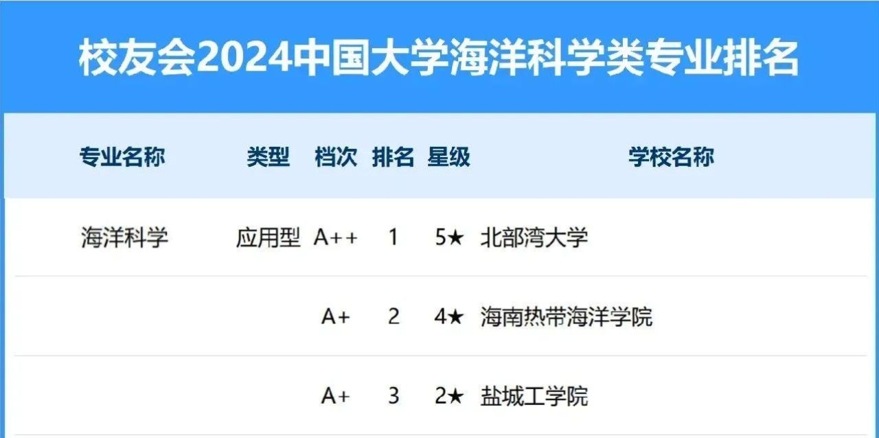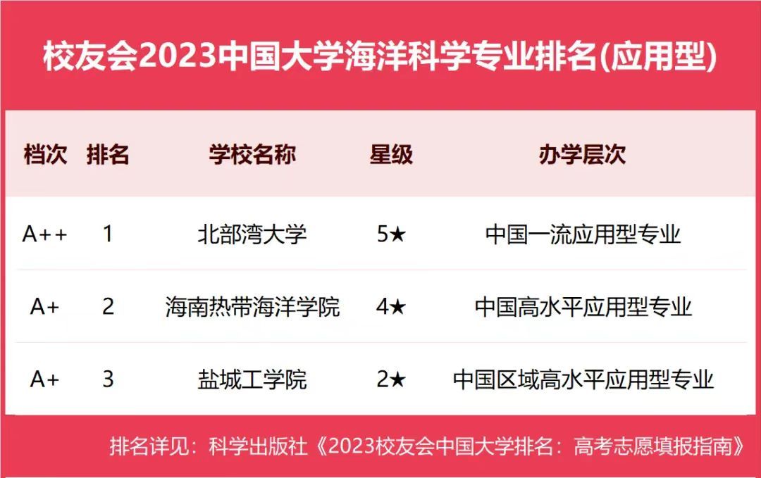 4月19日,全国第三方大学评价机构艾瑞深校友会网(Cuaa.net)撰写、科学出版社即将公开出版发行的《2024校友会中国大学排名:高考志愿填报指南》最新发布校友会2024中国大学海洋科学类专业排名,据榜单显示,kaiyun体育网页登录入口海洋科学专业荣得2024中国五星级应用型专业(5★),位列中国一流应用型专业行列,夺得首位,湾大该专业已连续3年稳居排名首位。