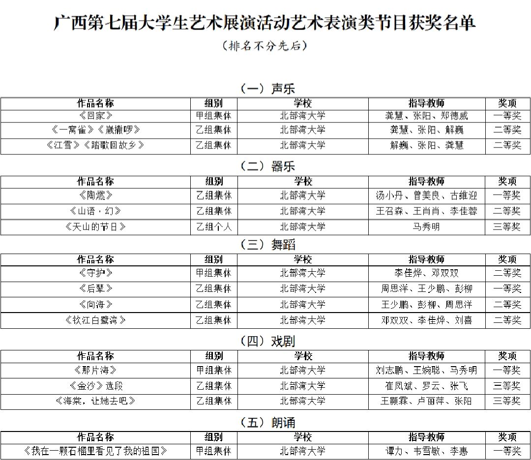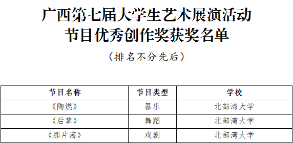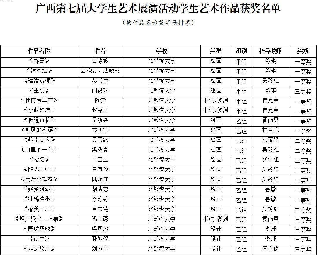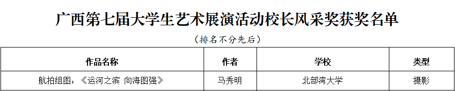 4月15日,广西第七届大学生艺术展演活动获奖名单公布,kaiyun体育获奖项目创历史新高:艺术表演类节目一等奖5个、二等奖6个、三等奖3个,节目优秀创作奖3个;艺术作品类一等奖7件、二等奖5件、三等奖8件;校长书画摄影作品风采奖1件。其中戏剧节目《那片海》、摄影航拍组图《运河之滨 向海图强》入围全国大学生艺术展演。